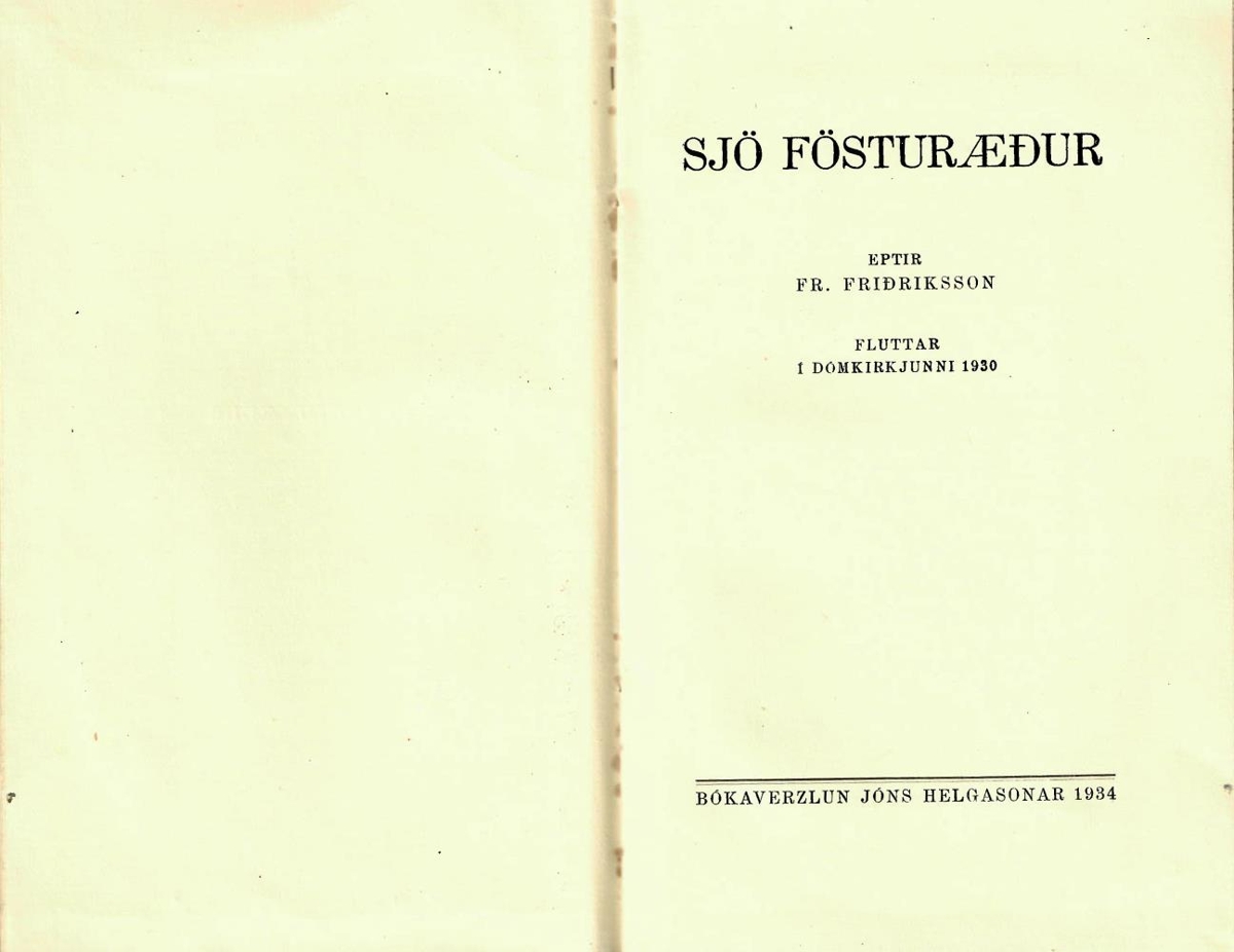 Sjö fösturæður = 7 fösturæður / eptir Fr. Friðriksson fluttar í Dómkirkjunni 1930. - 92 bls.