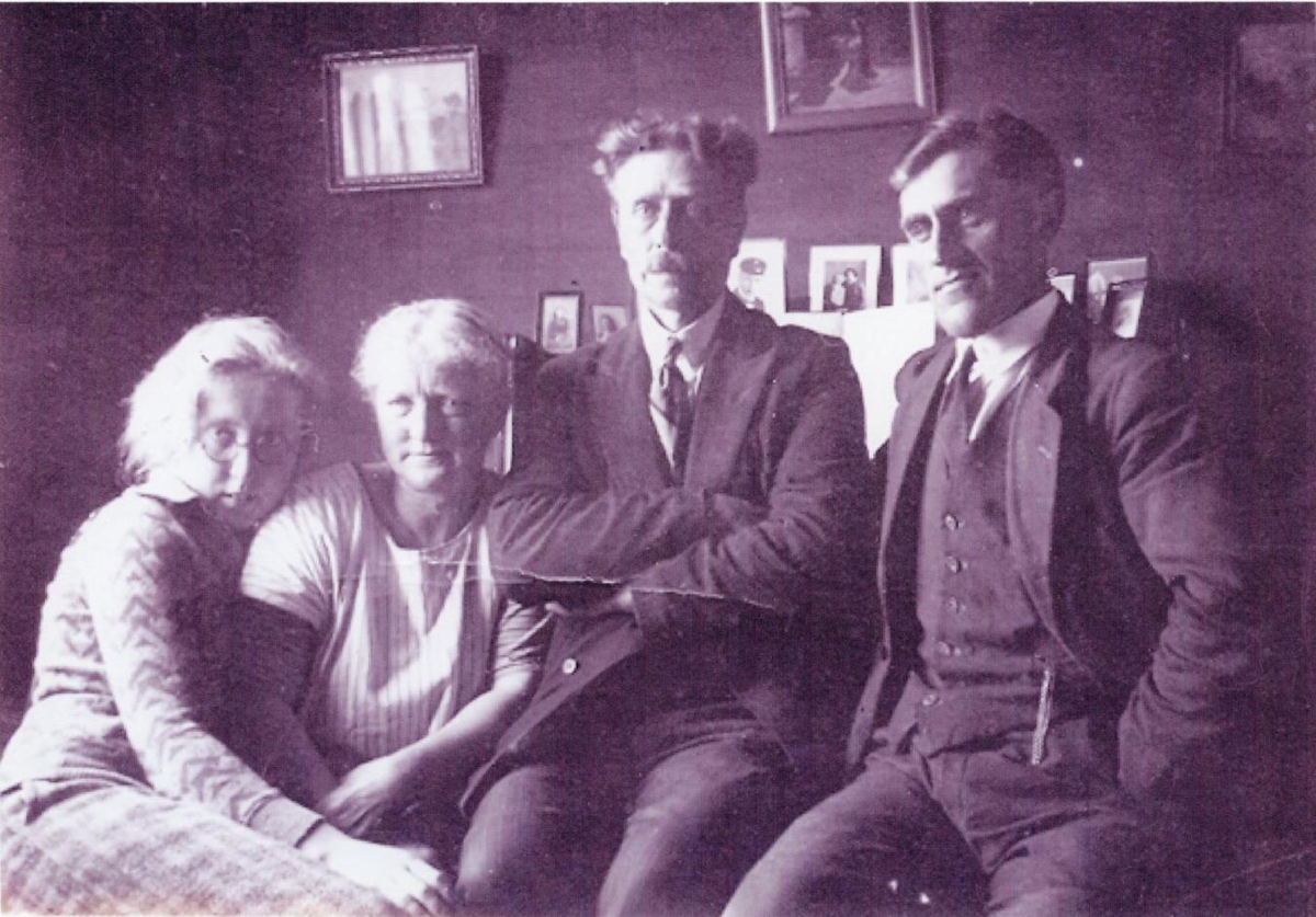 Góðra vina fundur. Frá vinstri: NN, Matthildur Finnsdóttir og eiginmaður hennar, Einar Magnússon skólastjóri Gerðaskóla í Garði og Björn Finnbogason kaupmaður í Gerðum í Garði.