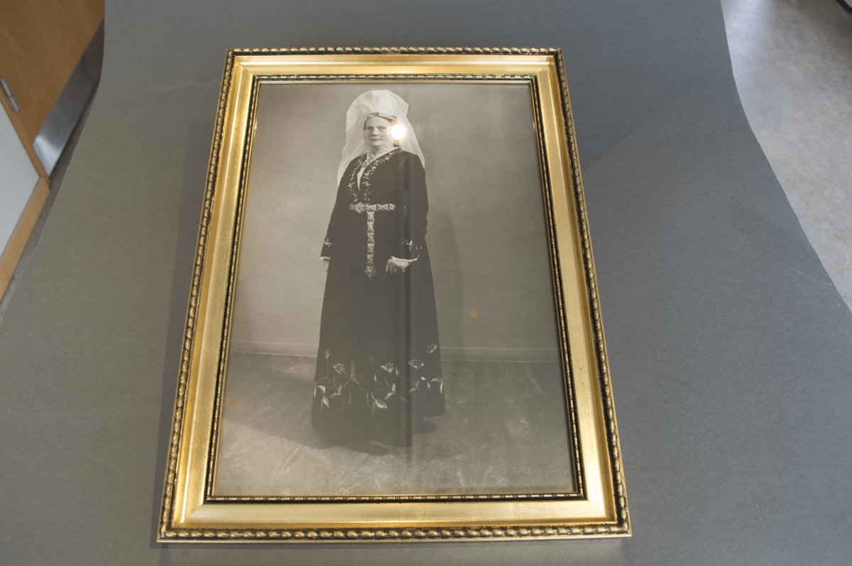 Innrömmuð stækkuð ljósmynd; frú Guðrún Pétursdóttir á Núpi, kona Guðmundar. Er í skautbúningi. Stærð myndar 46 x 33 cm. Mikil reisn var yfir Guðrúnu og þau Núpshjón voru áberandi fyrir glæsibrag hvar sem þau sáust á mannamótum. Gefið af frú Önnu Guðjónsdóttur frá Núpi í Fljótshlíð og fjölskyldu hennar.