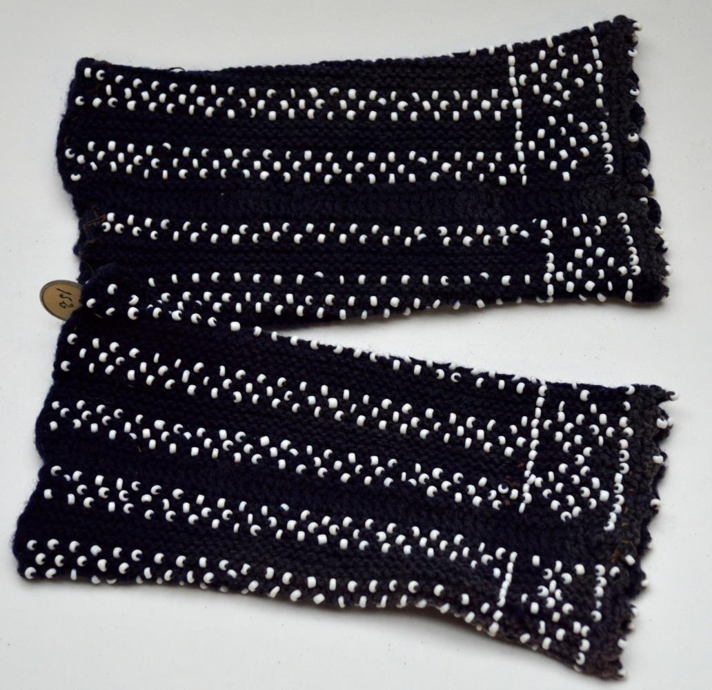 Smokkar, (handstúkur), perluprjónaðir. Verk Ársælar Magnúsdóttur, síðast í Stóru-Mörk og eign hennar. Dökkbláir með hvítum perlum. Sparismokkar.