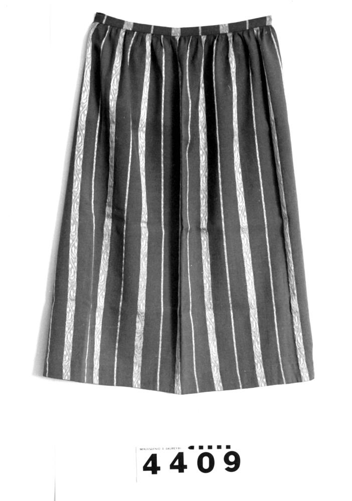 úr gráleytu efni með ljósari mynstruðum röndum og bekkjum upp og