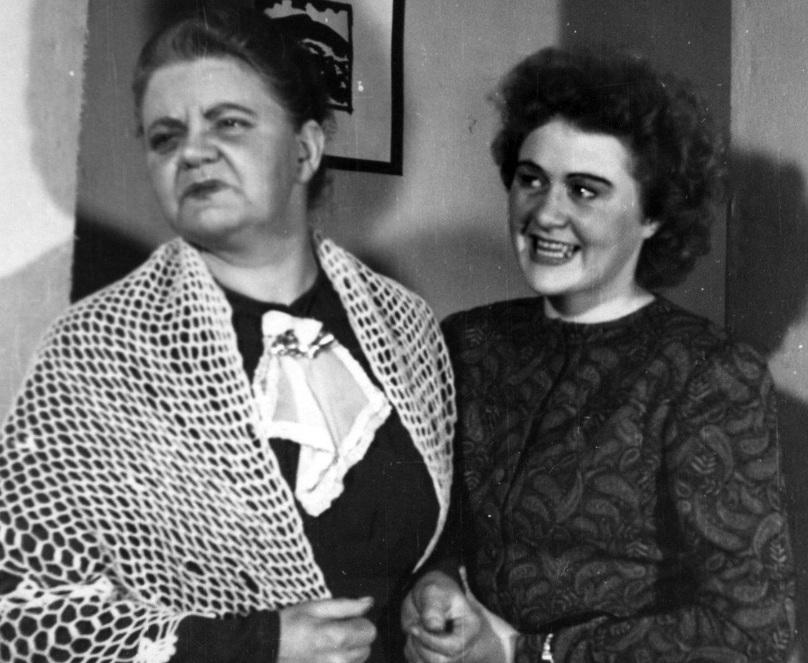 Emilía Jónasdóttir leikkona og Guðbjörg Þórhallsdóttir leika í leikritinu „Leynimelur 13“ sem sett var á svið 1949.