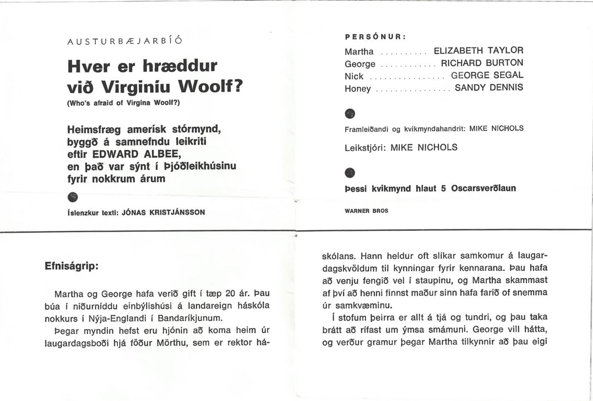 Hver er hræddur við Viginíu Woolf. - [8] bls. : myndir
