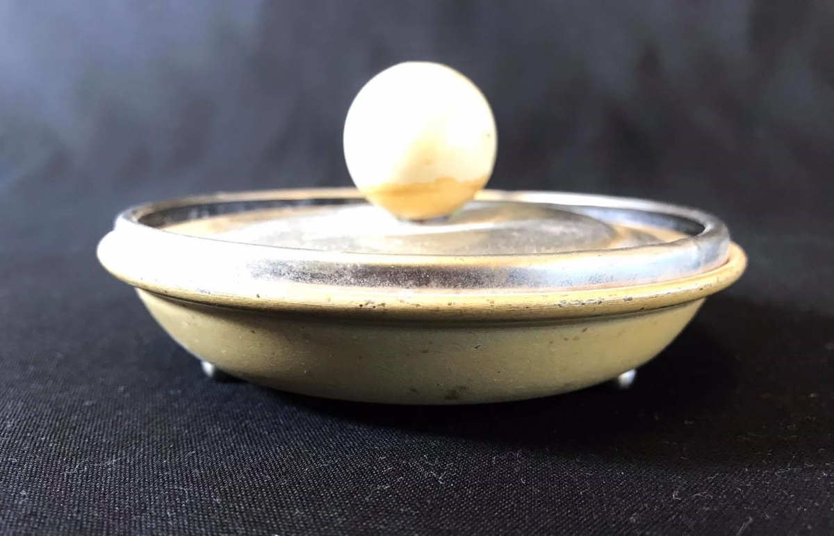 blikki. Tvöföld, neðri hluti gulleitur á þremur litlum fótum, þar