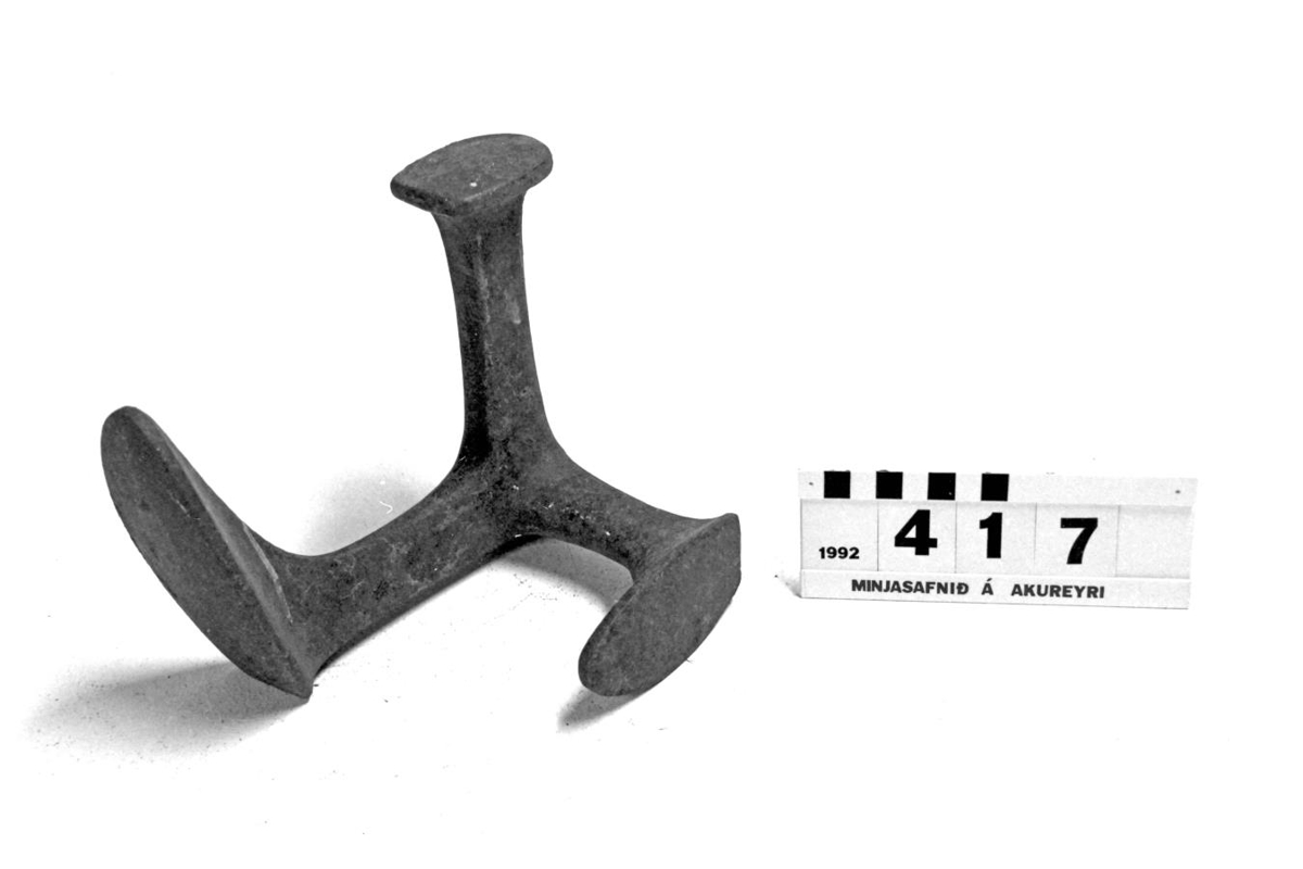 og út frá því ganga 2 misstór járn sem eru mótuð eins og skósólar.