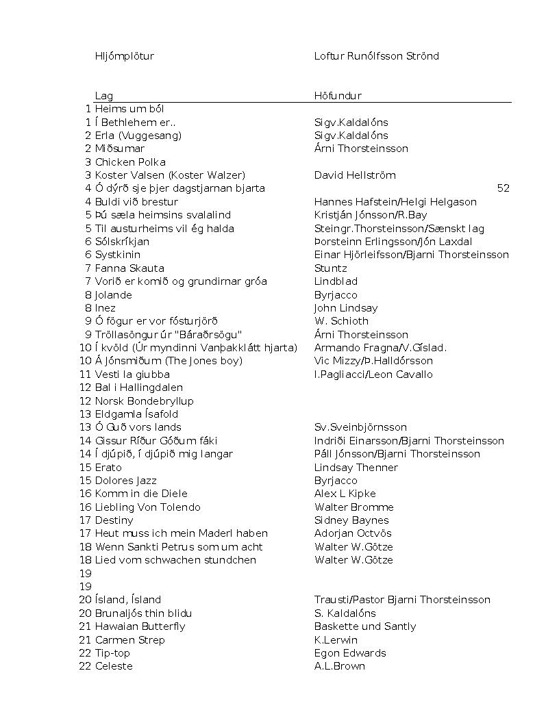 Hljómplötusafn, alls 52 hljómplötur 78 snúninga. Gefandi Loftur Runólfsson bóndi á Strönd í Meðallandi. Listi yfir hljómplöturnar er í viðhengi.
