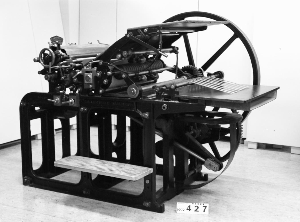 og fullkomnari en eldri vélar. Hún var í upphafi handsnúin og prentaði
