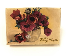 blóm. Fyrir neðan stendur "Víkings konfekt".