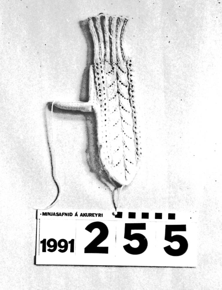 vettlingur. Bakið er útprjónað en lófinn er með sléttu prjóni. Vettlingurinn
