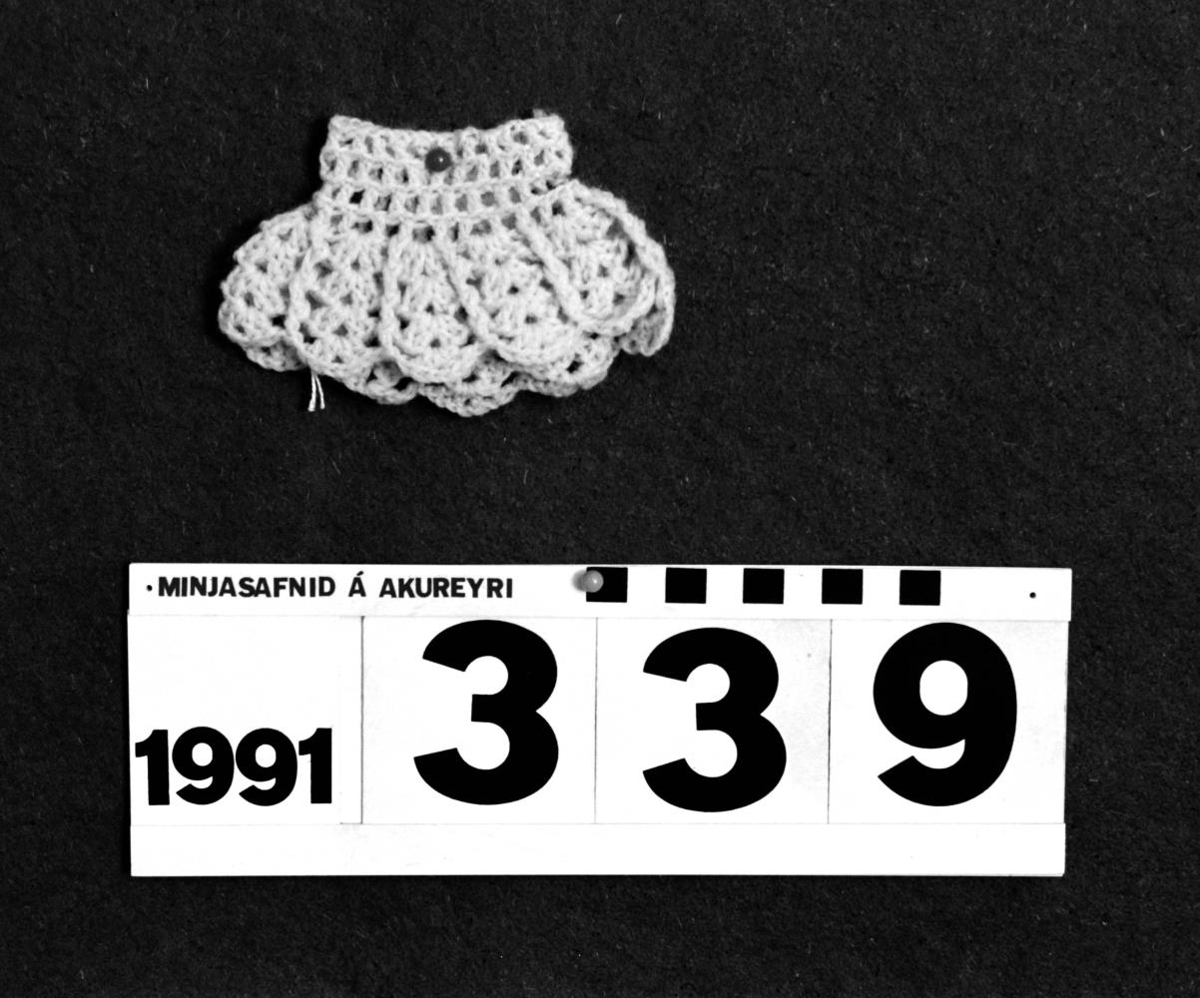 sem heklað er úr bleiku garni. Víkkar niður og þar er það heklað