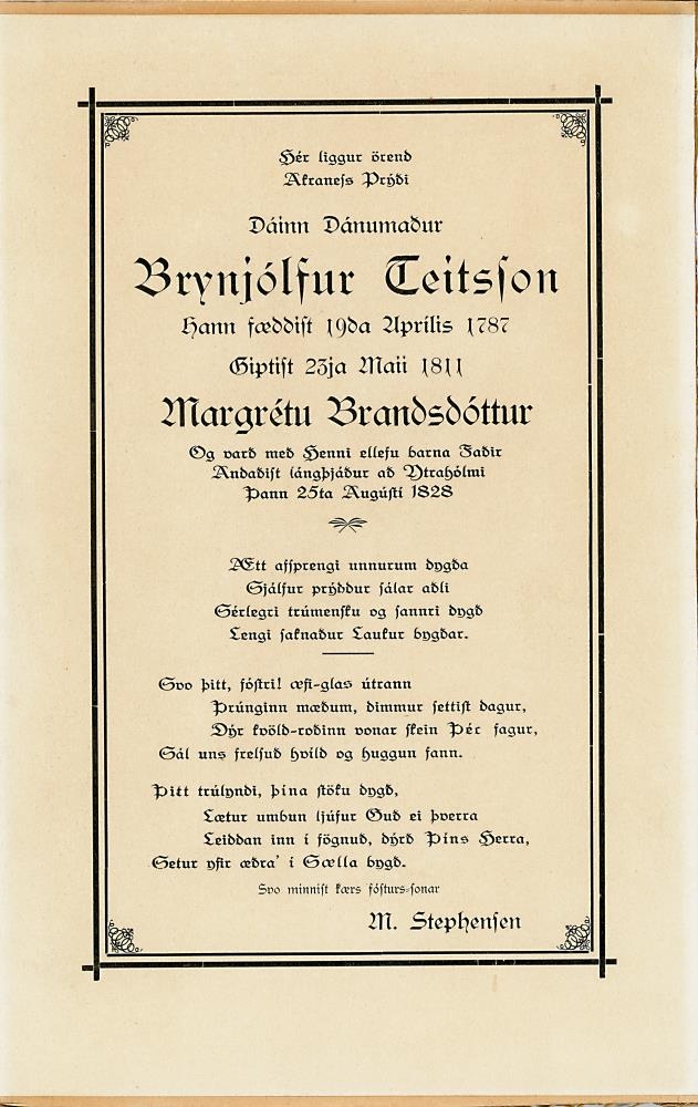 Grafskrift: Brynjólfur Teitsson (19.04.1787 - 25.08.1828) bóndi í Gerði og Innri - Hólmi