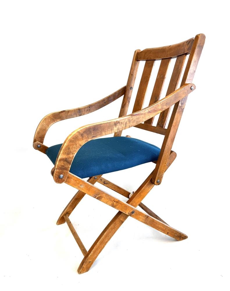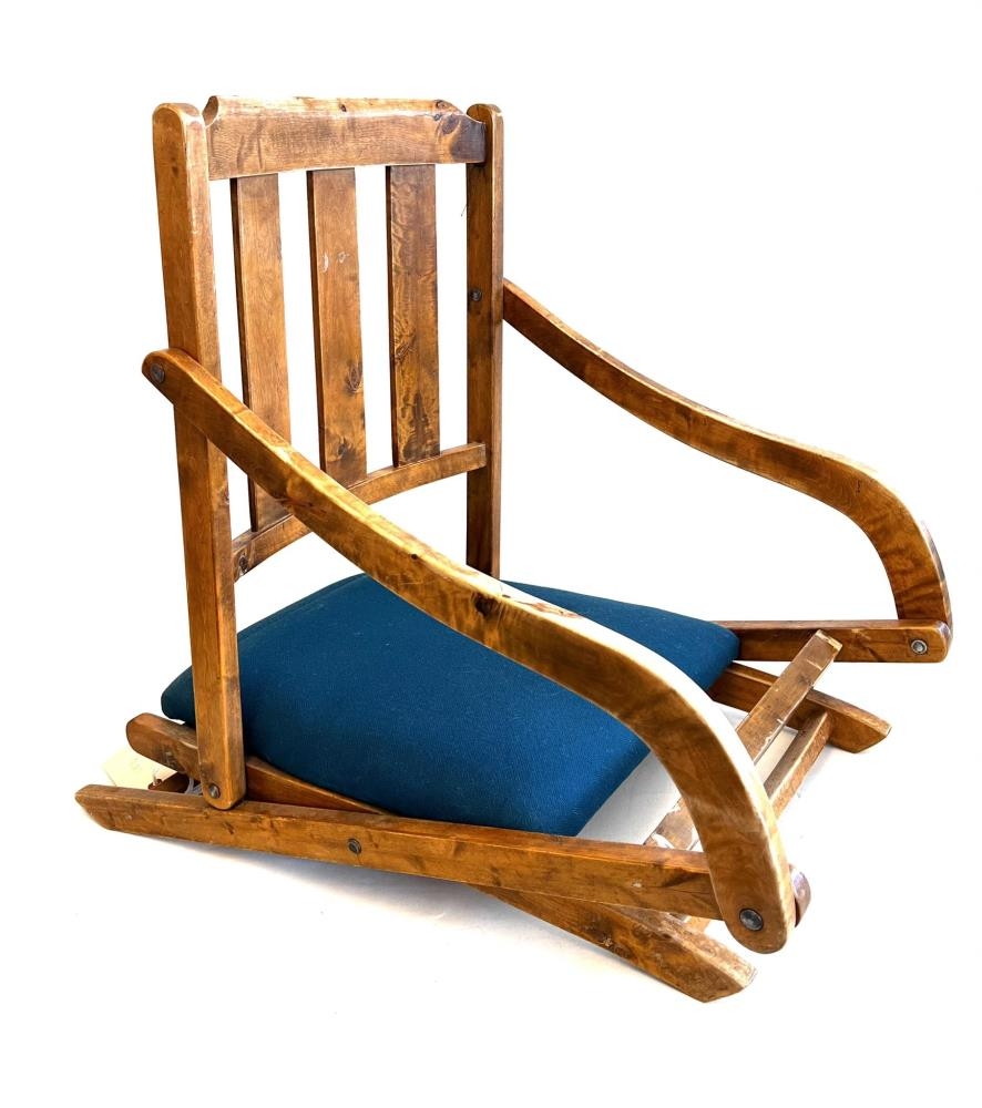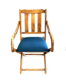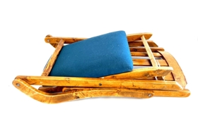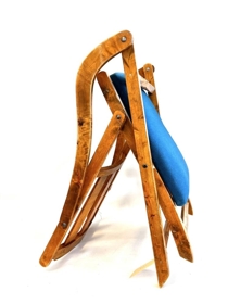 Samanbrjótanlegur stóll. Bólstruð ullarsessa sem krækist á stólfæturnar.
