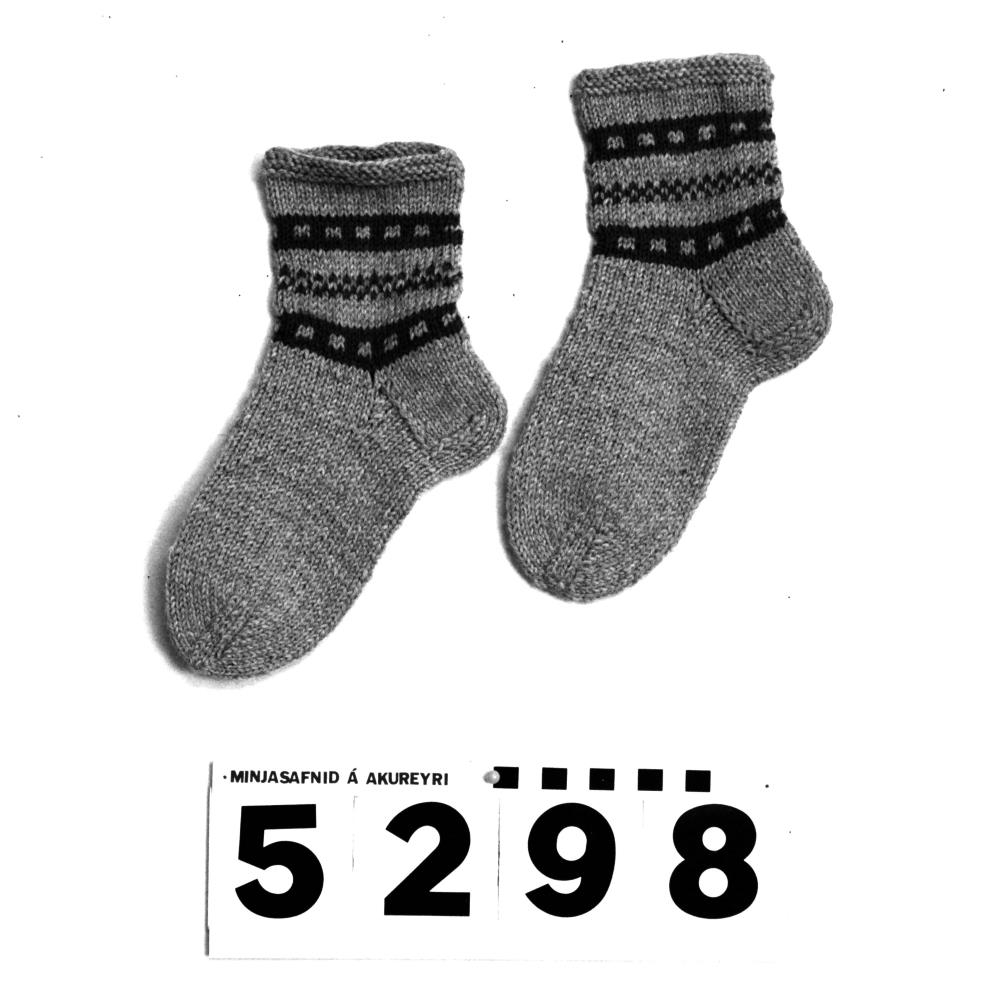 prjónaðir úr ullarbandi, gráir að lit með þremur rauðum röndum á