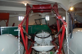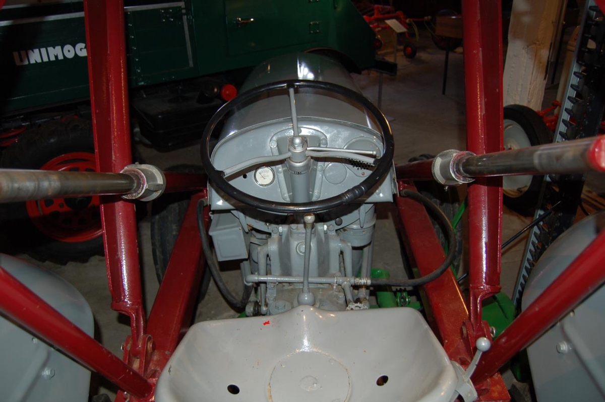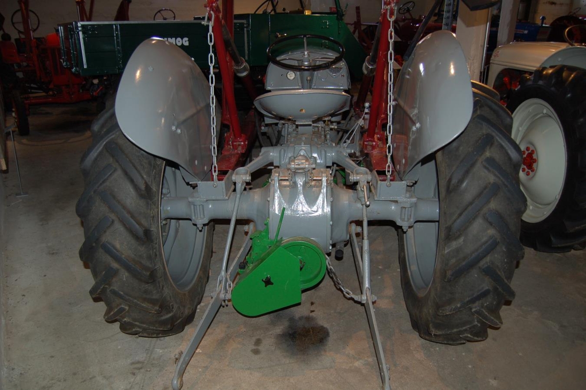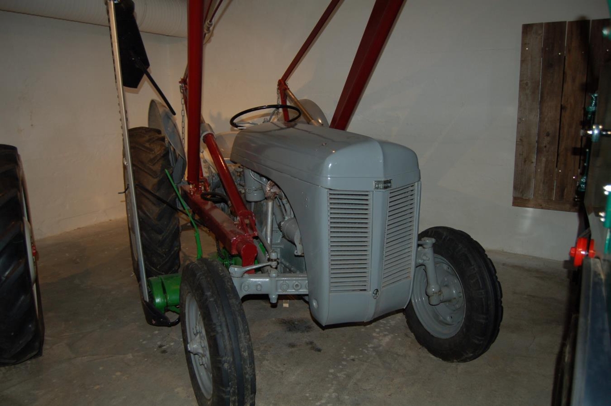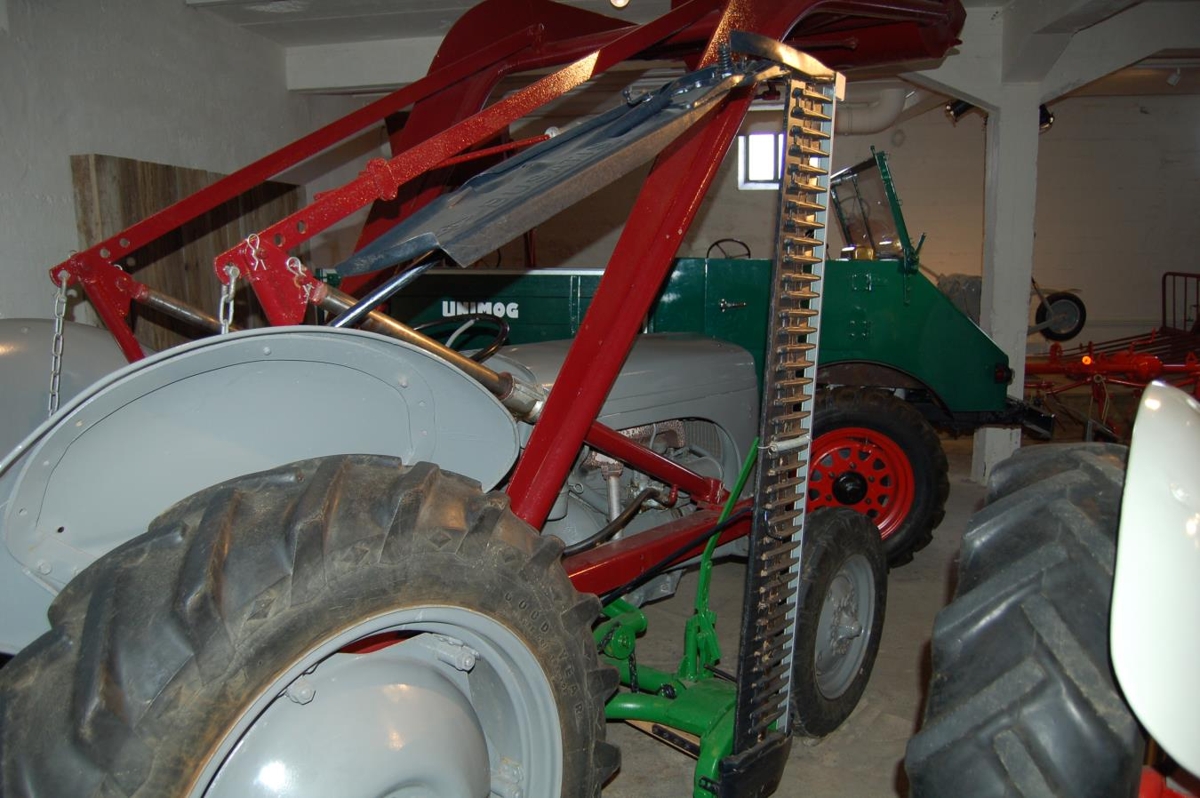 Grá dráttarvél af gerðinni Ferguson TE A20 (1953). Vélin var gerð upp af fjölskyldunni á Brekku í Norðurárdal sem gáfu safninu gripinn. Moksturstækið (Horndraulic) á vélinni var svo gert upp á safninu, sláttuvélin Busati sem á dráttarvélinni er fylgdi vélinni frá Brekku.