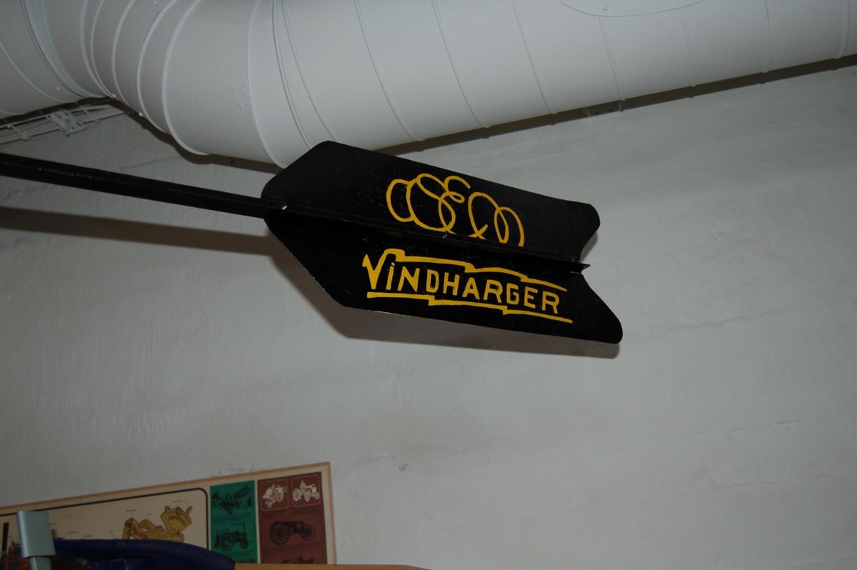 Vindrafstöð af gerðinni Windcharger, kom að Harrastöðum um 1950 og var notuð þar um árabil. Hún var skrúfuð niður á húsþak og hlóð rafhlöður. Jóel hefur málað stöðin og gert henni til góða, aðeins vantar á búnaðinn er leiddi rafmagnið frá rafalnum, er hafði stefnu eftir vindátt, og til fastrar lagnar á burðargrind „vindrellunnar“, er svo var jafnan nefnd.