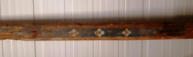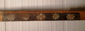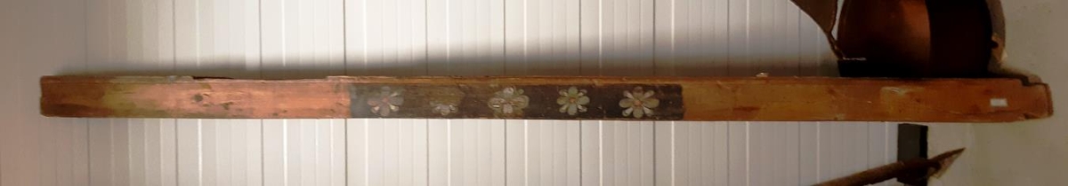 Hefur verið málaður bláum farfa en skreyttur fagurlega gerðum rósum á köflum