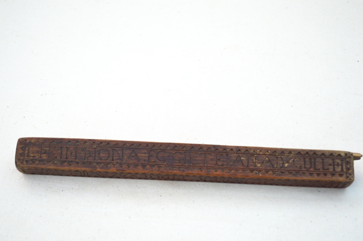 Prjónastokkur Guðríðar Þorsteinsdóttur frá Eystri-Sólheimum, smíðaður af manni hennar Pétri Erlendssyni á Vatnsskarðahólum. Á hann er letruð þessi vísa: