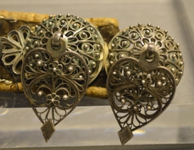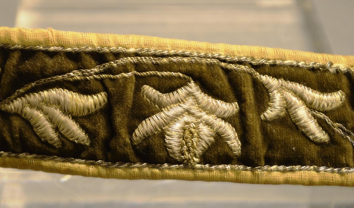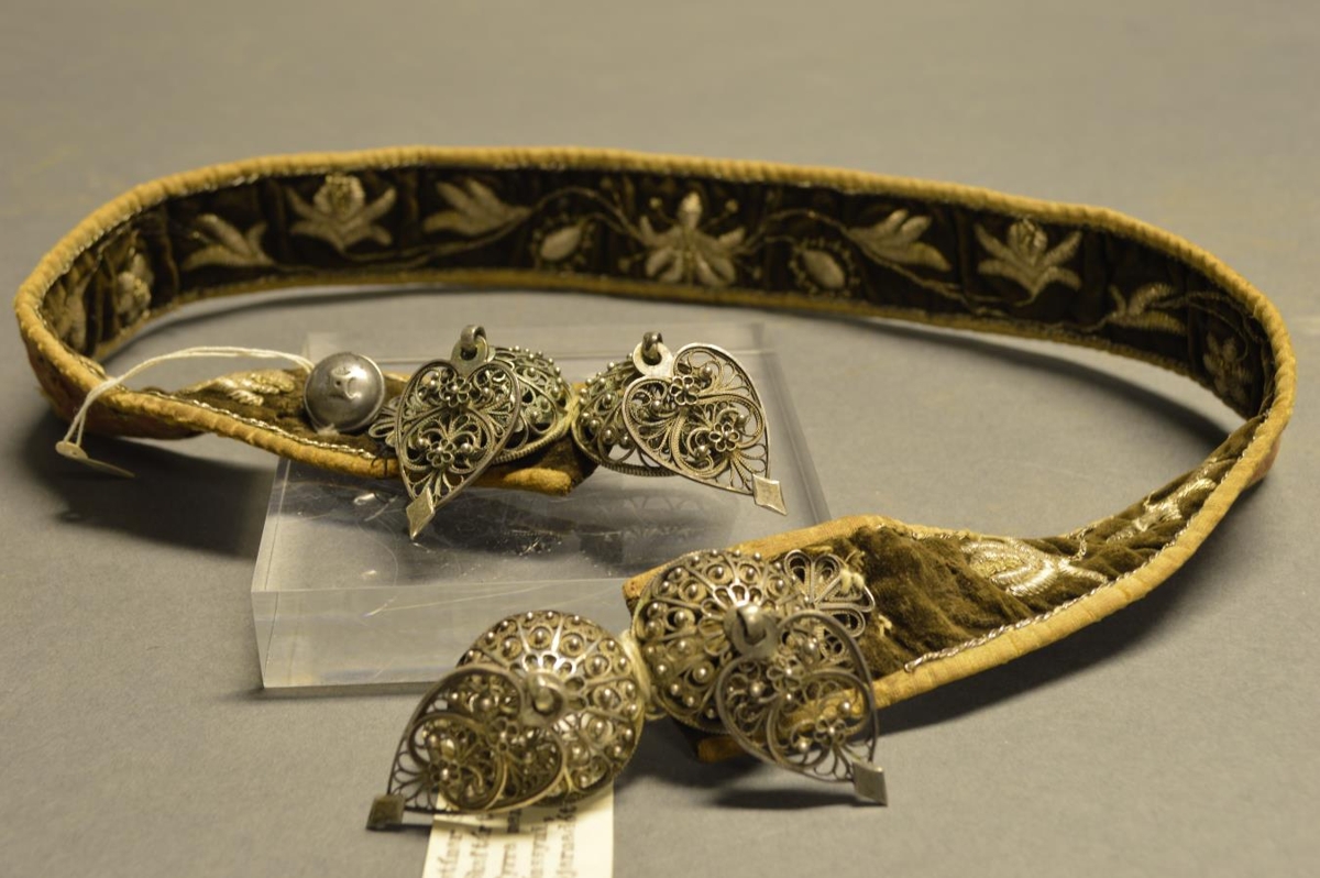 Belti Kristínar Símonardóttur í Gröf í Skaftártungu, ömmu Kristínar á Heiði. Beltið er baldýrað með silfurþræði. Það er með silfur beltispörum, gerðum af tvísettum kúlum úr kornsettu víravirki. Silfurlauf eru á hverri kúlu. Víravirkið er dálítið oxað og er með einhverja spánskgrænu. Líklega ekki sterlingsilfur.