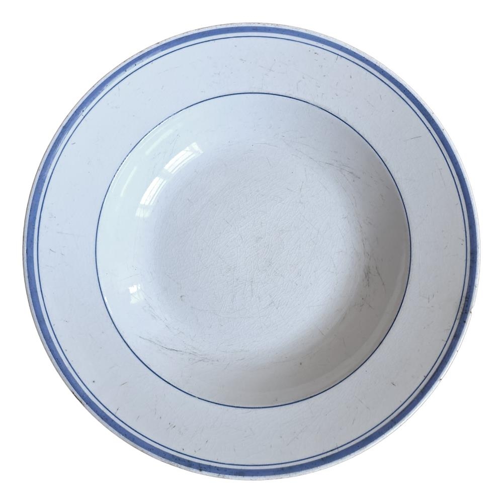 Súpudiskur hvítur í grunninn með þremur bláum röndum