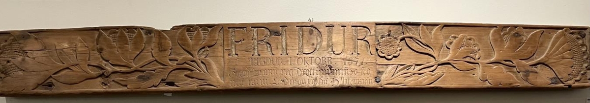 Bitafjöl úr Gerða-Friði. Er með miklum upphleyptum útskurði til enda. Á miðju er letrað:" FRIÐUR. Bigður í októbr 1871. GREIÐ ÞÚ MINN VEG, DROTTINN MINN,SO ÉG NÁI MINNI LENDINGU. Í NAFNI HEILAGRAR ÞRENNINGAR" Niðurlag skammstafað. Verk Kjartans Ólafssonar í Þúfu. Sbr. gripi nr. 481 og 2817.