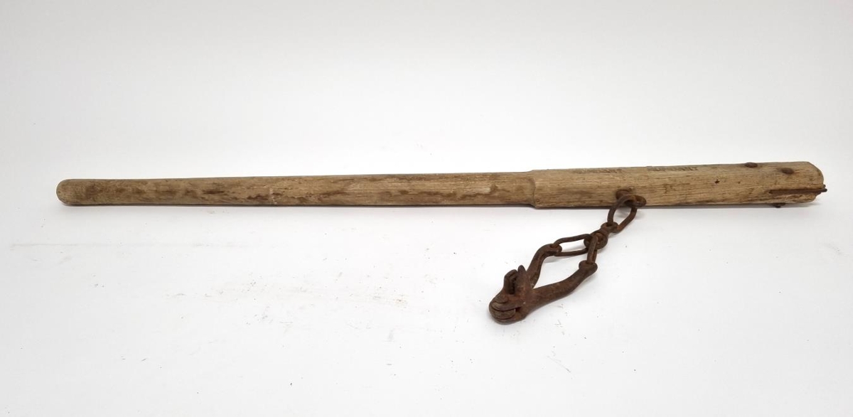Girðingarstrekkjari. Brennimerktur á annari hlið "MUNDAKOT", Þessi tegund var víða til á sveitabæjum um miðja 20. öld.