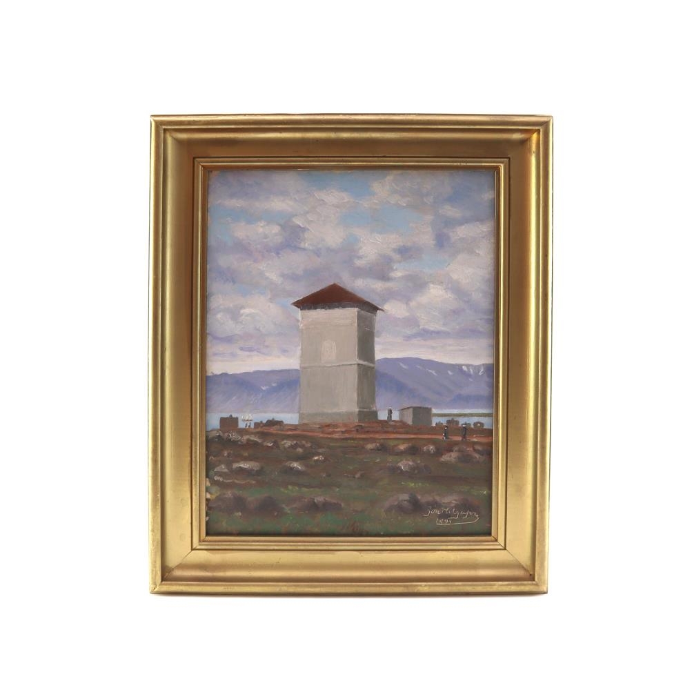 Málverk eftir Jón Helgason: 18. Skólavarðan 1892. Olíulitir á krossvið.