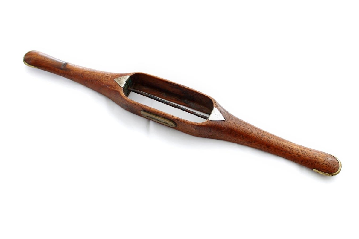 Vefskytta, mjög vönduð að smíði,efni mahony búið nýsilfri og kopar. Lengd: 37 cm. Smíðuð af Jóni Jónssyni á Seljavöllum, föðurbróður Guðnýjar, um 1900.