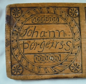 Á fjölina eru rist tvö nöfn, Jóhann Þórgeirsson og Lilja Sölvadóttir. Í Skagfirskum æviskrám (1850-1890, bindi I) er skrifað um hjónin Jóhann og Lilju. Jóhann Þorgeirsson var fæddur 1820 í Stóru-Brekku í Fljótum og drukknaði í sjó 1874. Hann var kvæntur Lilju Sölvadóttur, sem fædd var 1819 á Fjalli í Sléttuhlíð og dáin 1901 á Arnarstöðum í Sléttuhlíð. Óvíst er hvernig rúmfjölin er komin í eigu Margrétar.