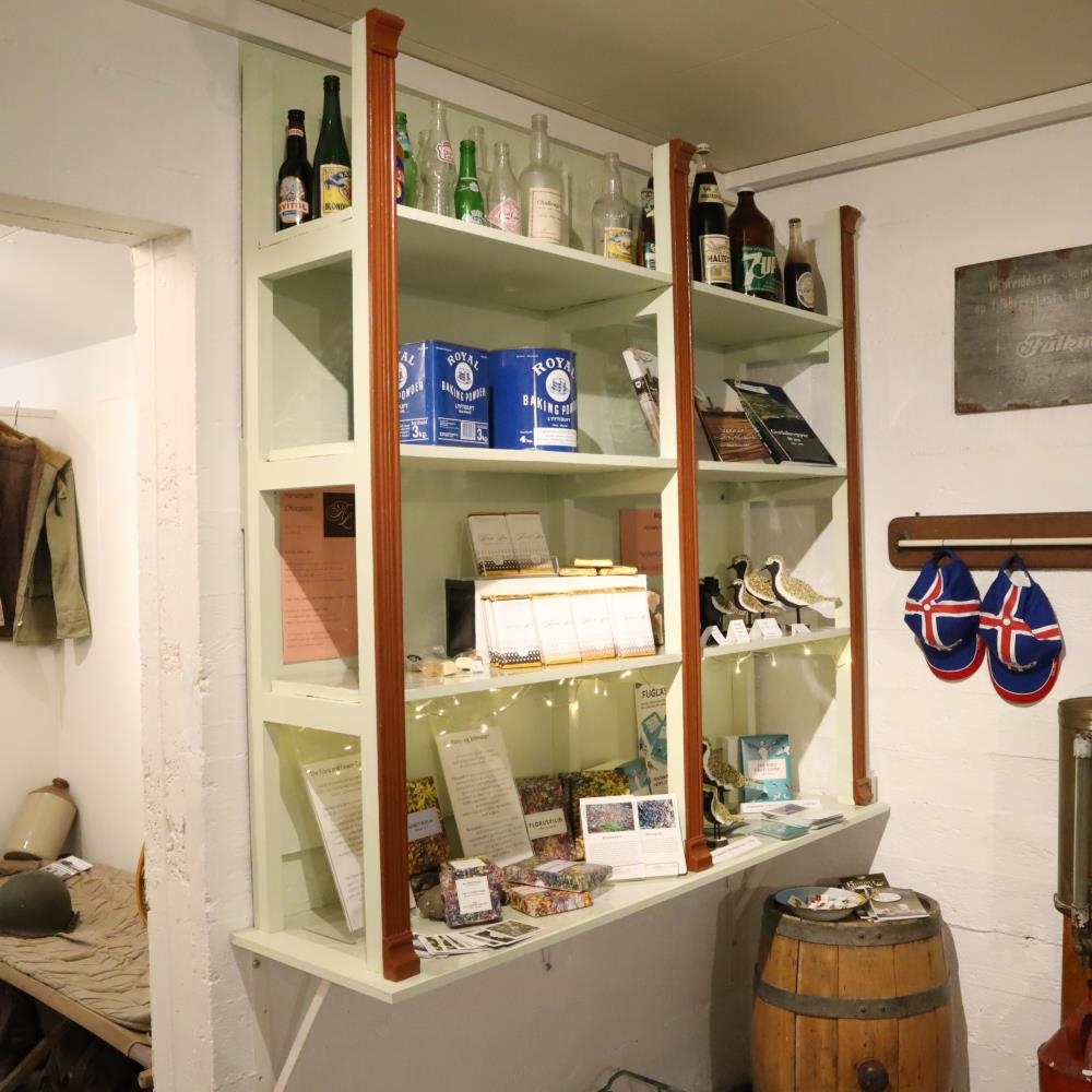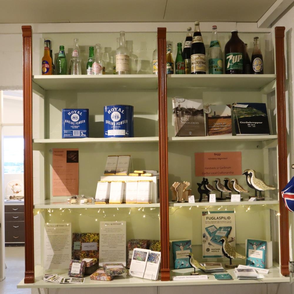 Vegghillur frá Verzlun Þorláks Benediktssonar kaupmanns í Akurhúsum í Garði. Verzlunin starfaði frá árunum 1921 - 1972. Sigurgeir Torfason frá Miðhúsum í Garði afhenti byggðasafninu hillurnar en fyrrverandi eiginkona hans, María Guðbjörg Guðfinnsdóttir átti hillurnar frá því að þau hjón bjuggu í Akurhúsum. María var fús til að gefa safninu hillurnar þegar verið var að enduropna verzlunina á neðri hæð byggðasafnsins, fyrir átti safnið hluta af innréttingum úr Verzlun Þorláks. Búið var að mála hillurnar í gráu og hvítu en leyfi fékkst frá Þjóðminjasafni Íslands til að mála hillurnar í upphaflegum litum.