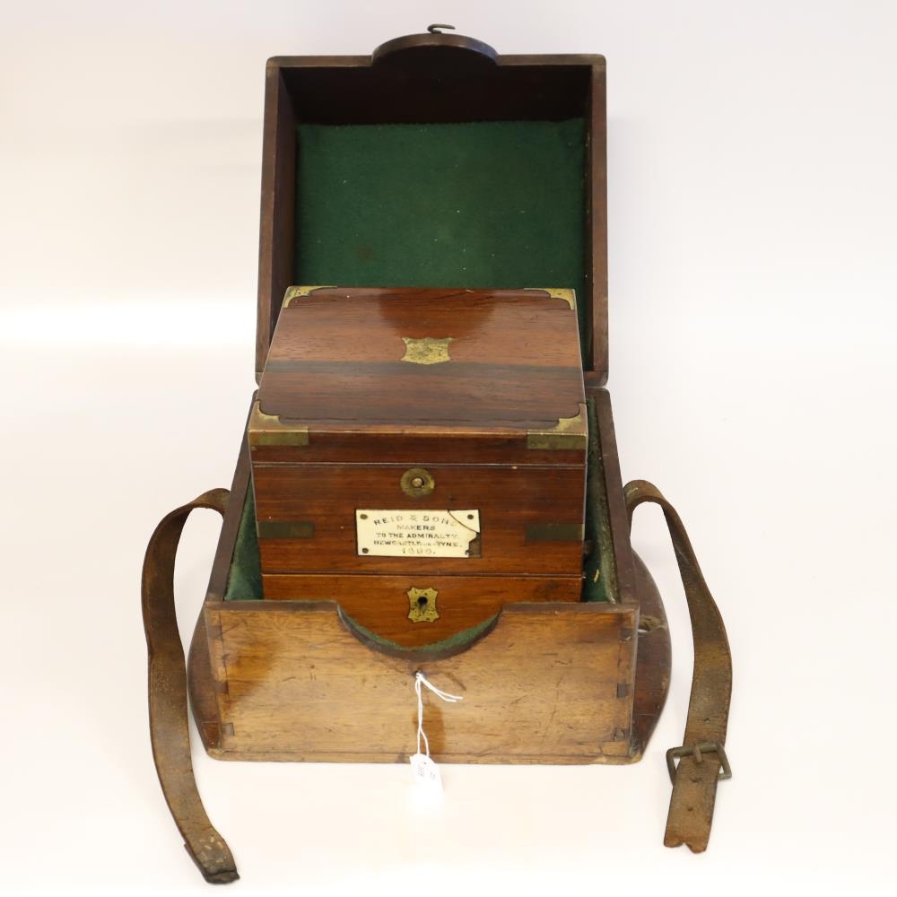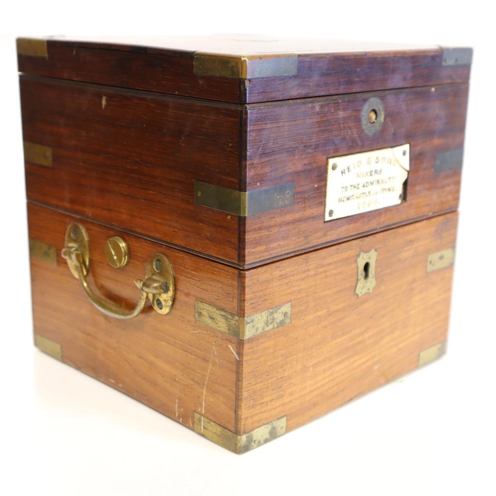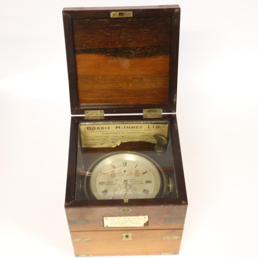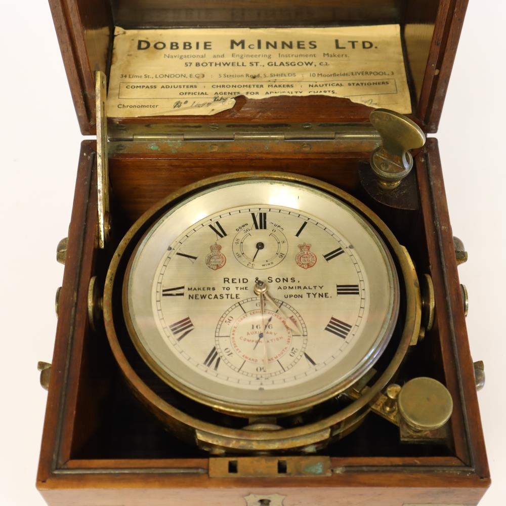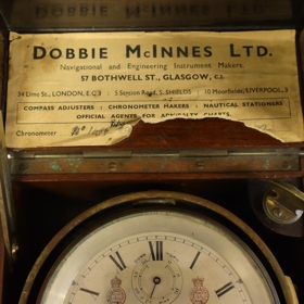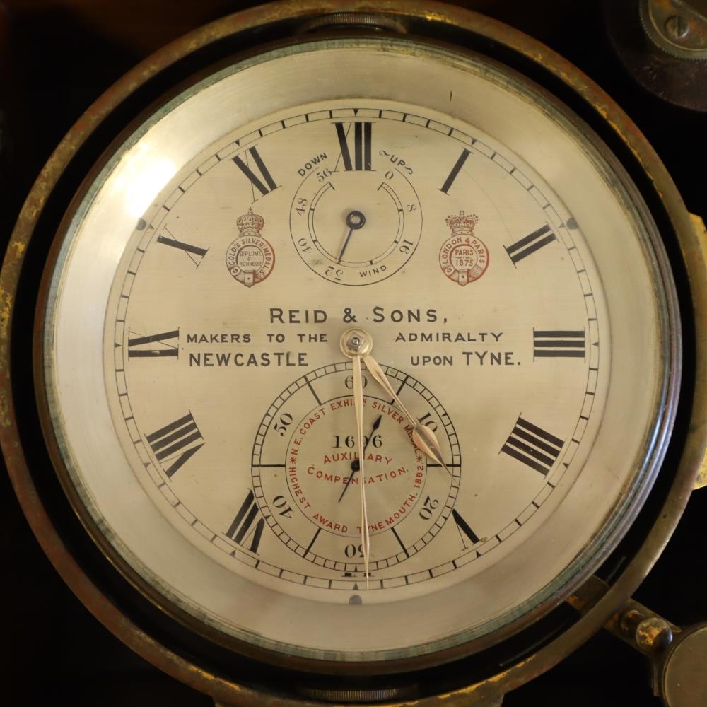 Sjóúr vel með farið í mahóníkassa sem er fóðraður að innan með grænu filtefni og hrosshári. Bræðurnir Björgvin og Guðni Ingimundarsynir frá Garðstöðum í Garði tóku klukkuna úr ónefndu skipi sem strandaði líklega utan við Eldey á árum seinni heimsstyrjaldar. Björgvin geymdi klukkuna heima hjá sér í áratugi, hún er einstaklega vel með farin og virkar enn. Upplýsingar á úrinu á hvítu skilti úr filabeini: REID & SONS MAKERS TO THE ADMIRALTY. NEWCASTLE-ON-TYNE. 1696 (Framleiðslunúmer). Þetta er sérútgáfa með silfur bakplötu og gull vísum. Úrið er upptrekkt, sennilega á tveggja daga fresti.
