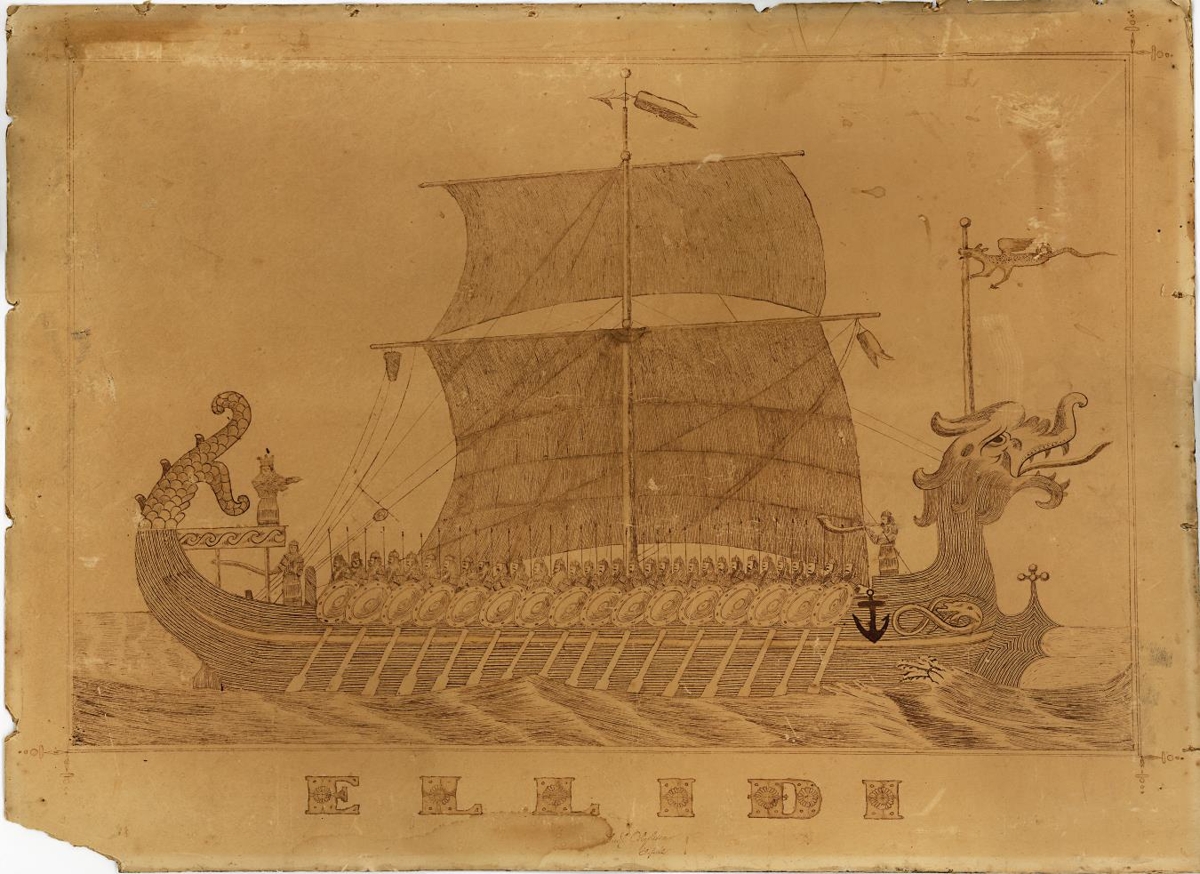 Myndin á að sýna skip Friðþjófs frækna sbr. Fornaldarsögur Norðurlanda.
