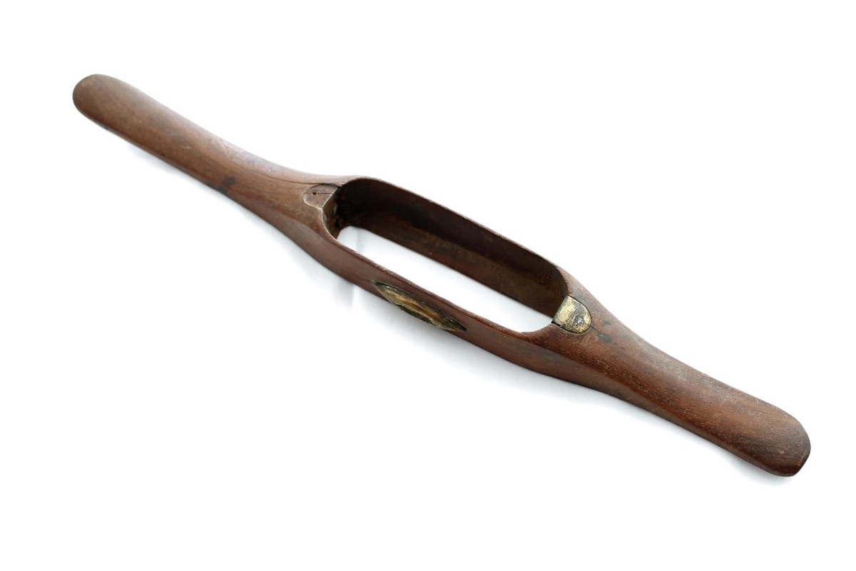 Vefskytta úr mahogný, virðist smíðuð af Tómasi Þórðarsyni á Rauðafelli um 1905. Vantar kefli fyrir þráðinn.