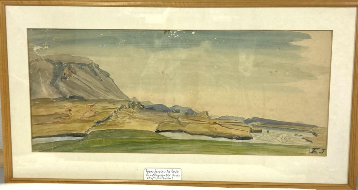 Vatnslitamynd á pappír, keypt af Sveinbirni Hjaltasyni í Hveragerði 6. maí 1994. Myndin er máluð af Einari Jónssyni