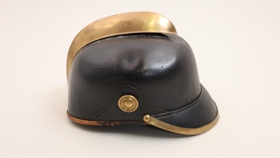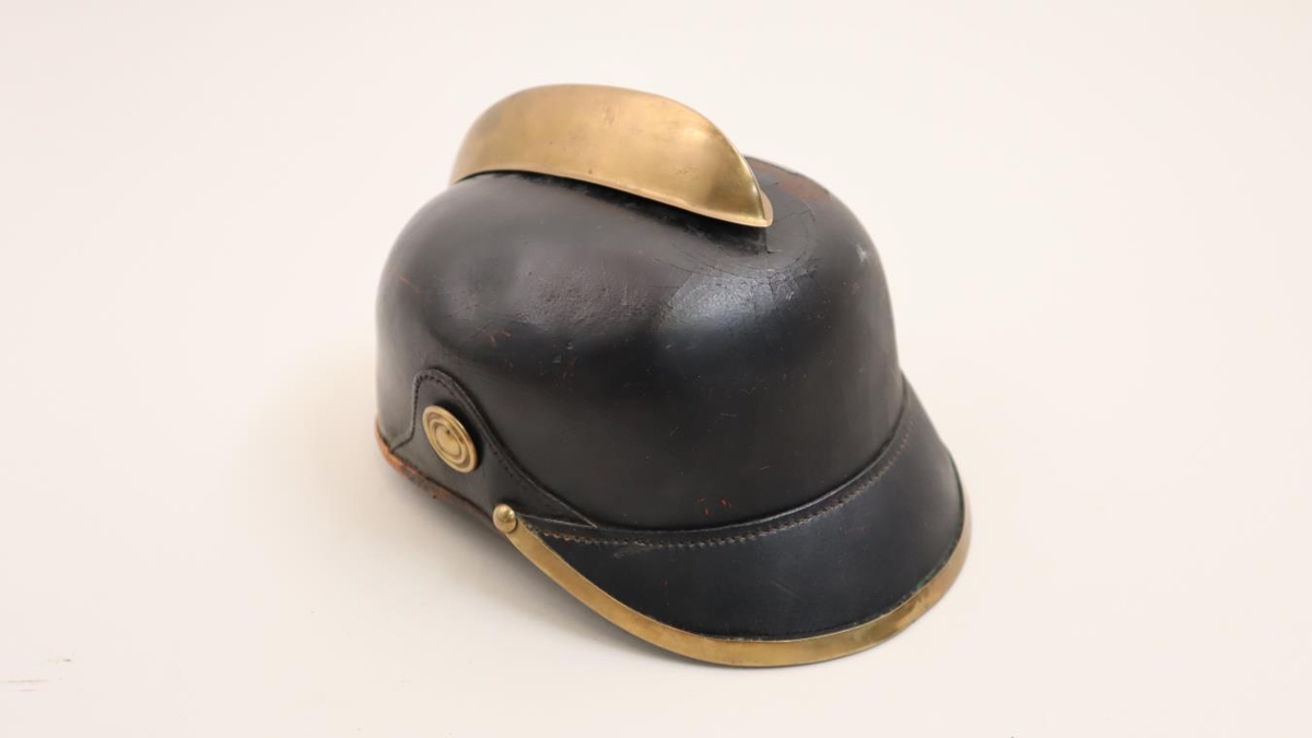 Svartur blikkhjálmur með járnkambi og plötu merkt nr.5.