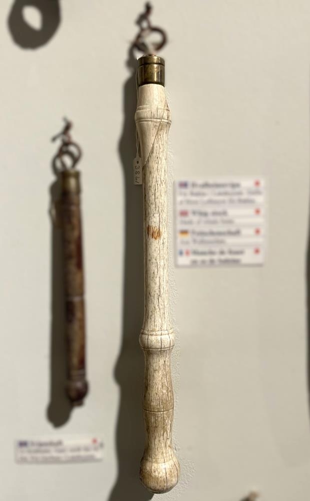 Hvalbeinssvipa, rennd af föður gefanda, Lofti Þórðarsyni á Bakka um 1910. Þórður Loftsson frá Bakka kvaðst muna það er svipan var rennd.