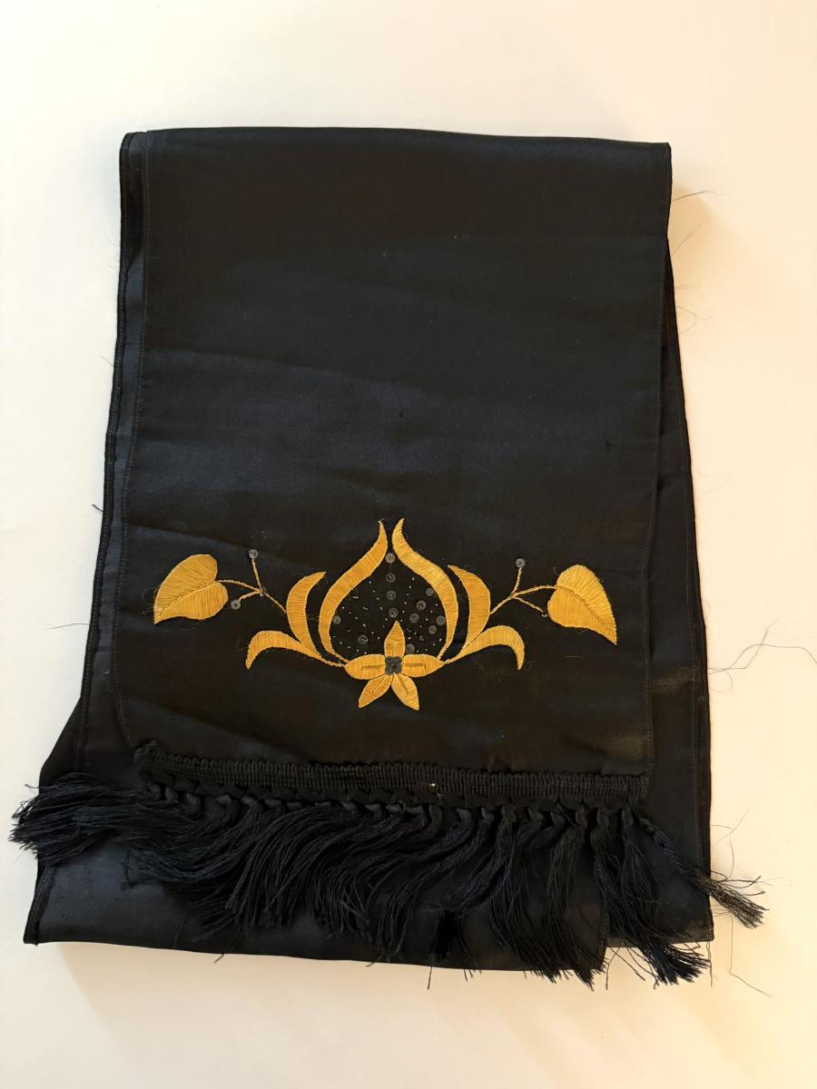Peysufataslifsi Þórunnar Jónsdóttur. Er úr svörtu silki, kögrað til enda og ísaumað til enda, gullin rós og laufskrúð, 1,50 m. á lengd, 22 cm á breidd. Þetta er verk Þórunnar frá um 1910.