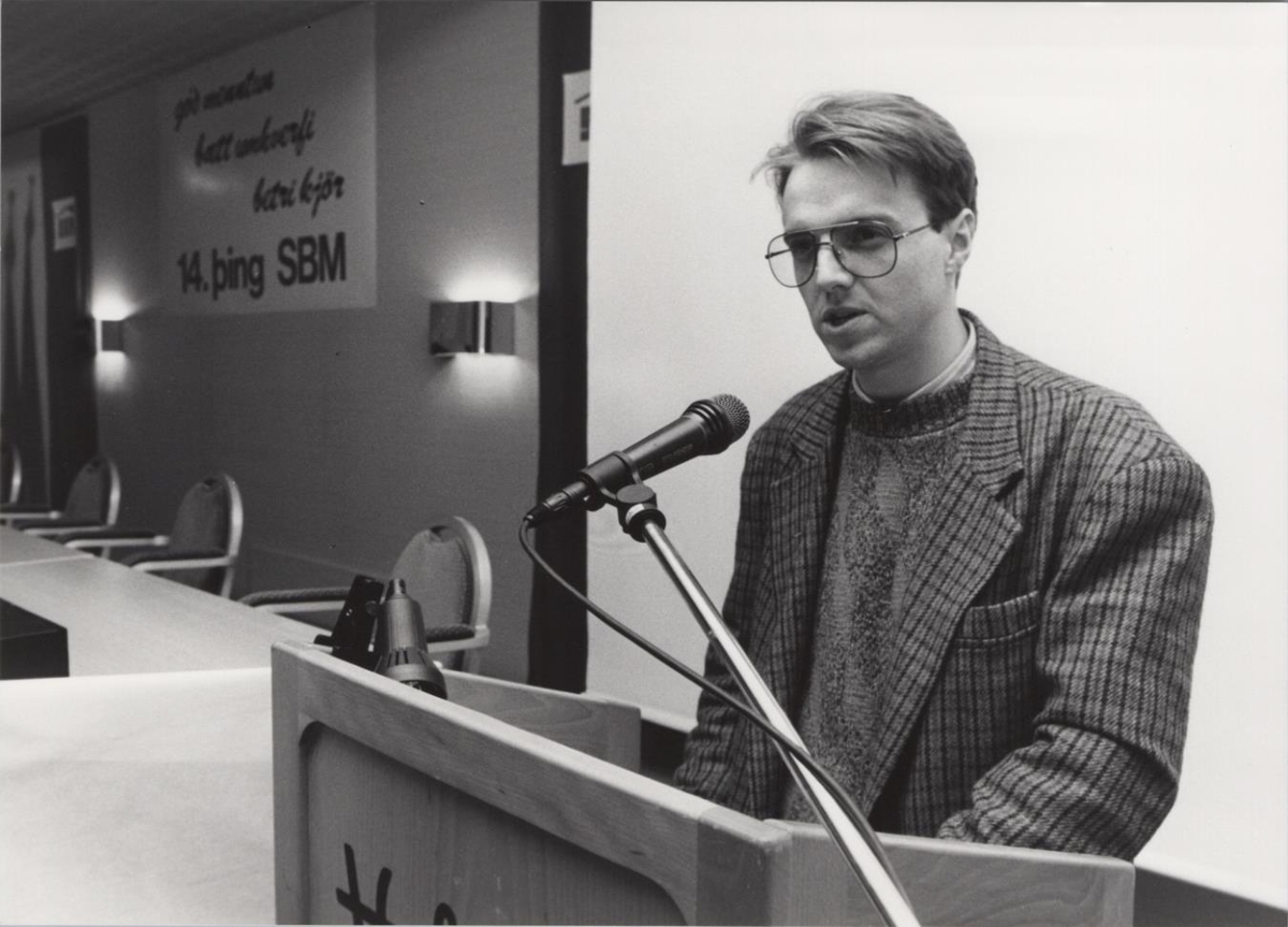 Pálmar Halldórsson, framkvæmdastjóri Iðnnemasambands Íslands. 14. þing Sambands byggingamanna, 1990.