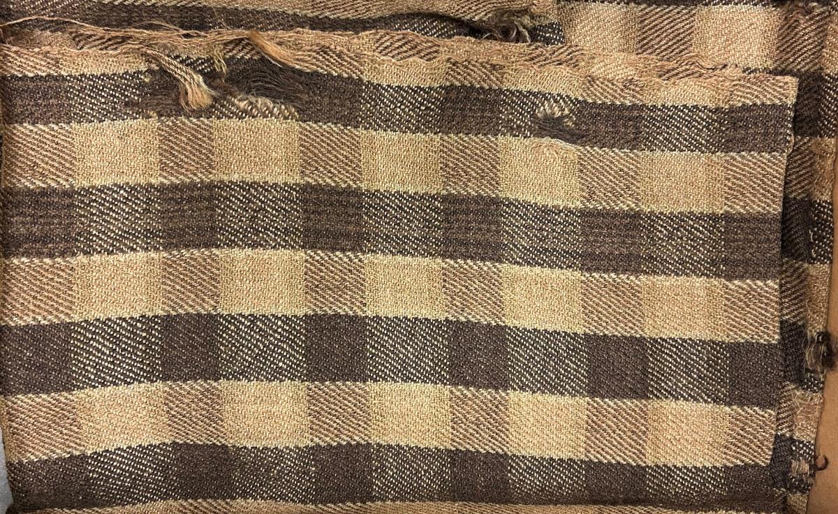 Rúmábreiða, handofin, jurtalituð, köflótt togteppi. Notað á rúm í baðstofunni á Efri-Brú en flutt var úr baðstofunni í nýtt hús árið 1947.