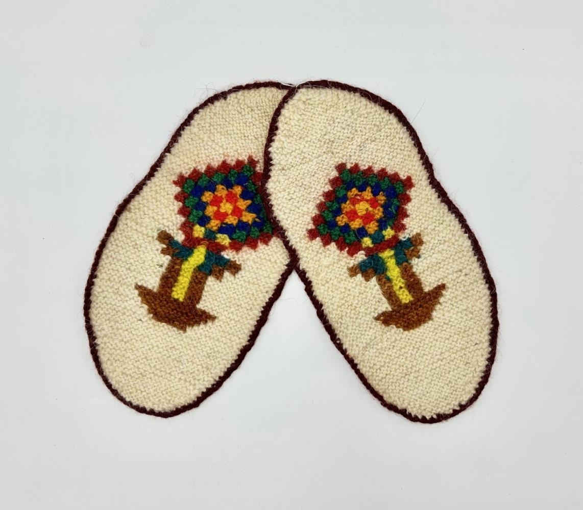 Handprjónaðir illeppar, par. Garðaprjón með rós í miðju.