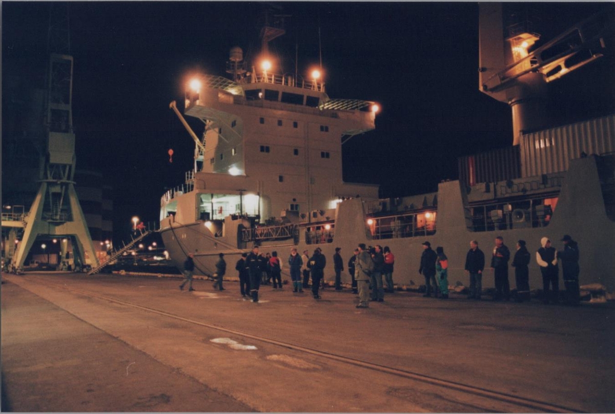 Atburður utandyra á hafnarbakka, óvíst hvenær.