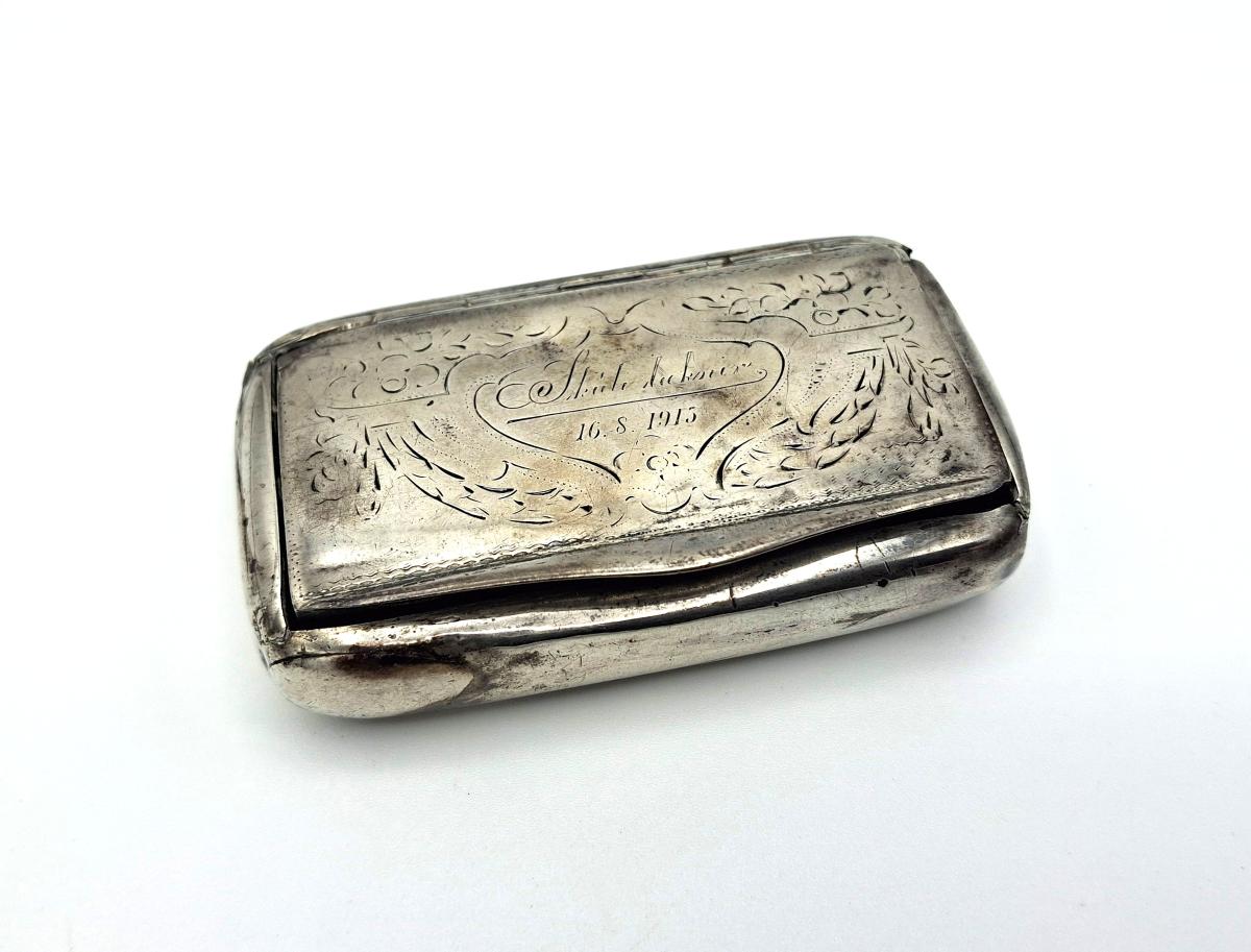 16.8.1915 og rósaverk. Dósirnar eru mikið notaðar. Skúli var Árnason. Óvíst