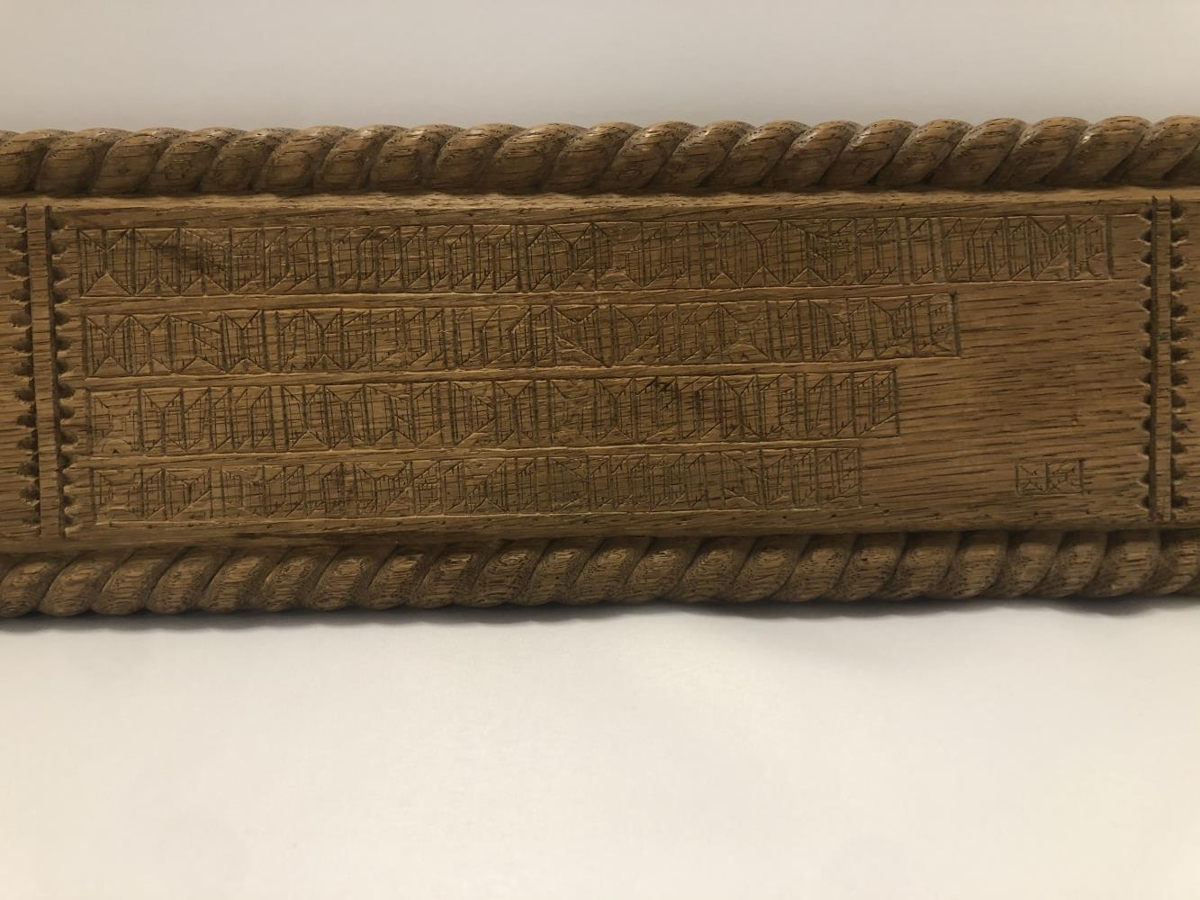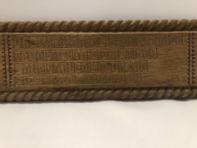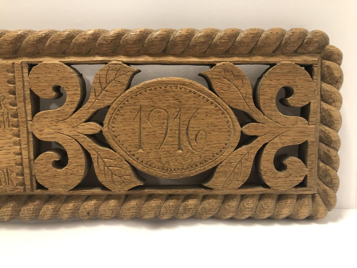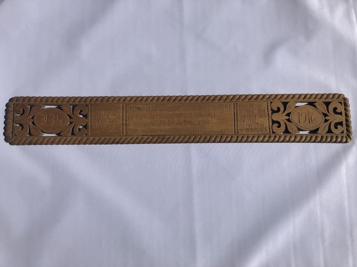 Rúmfjöl gegnskorin með ártalinu 1916. Skorin af Hirti Björnssyni frá Skálabrekku í Þingvallasveit er lærði tréskurð hjá Ríkarði Jónssyni. Fjölin er frá föðurforeldrum gefanda er lengi bjuggu á Skálabrekku. Skorin er á hana vísa með rúnaletri. „Omalugr skal ok í orþum stilltr sier fill guþs ast geta, æþri krapt fær maþr aldregi en sjer tungu trur." (Hugsvinnsmál).