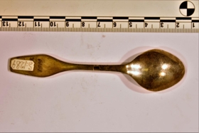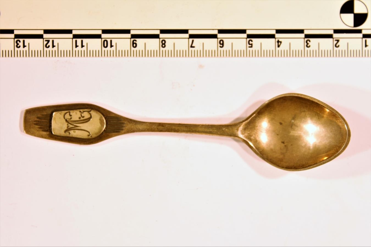 Silfurteskeið áletruð að framan: M, að aftan 12. des. 1919. Úr dánarbúi Matthildar Gottsveinsdóttur í Vík í Mýrdal (f. 1890, d. 1977) samkvæmt ráðstöfun hennar.