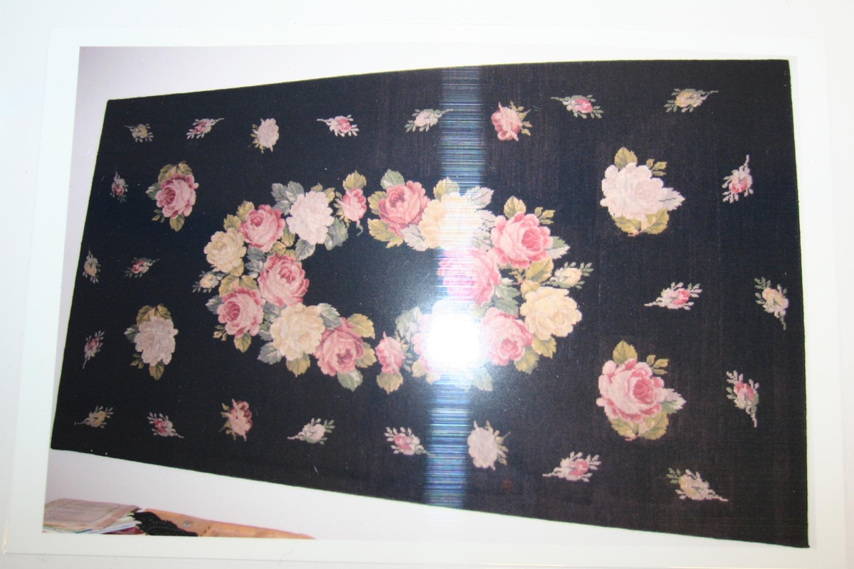 Veggteppi með rósamunstri, saumað