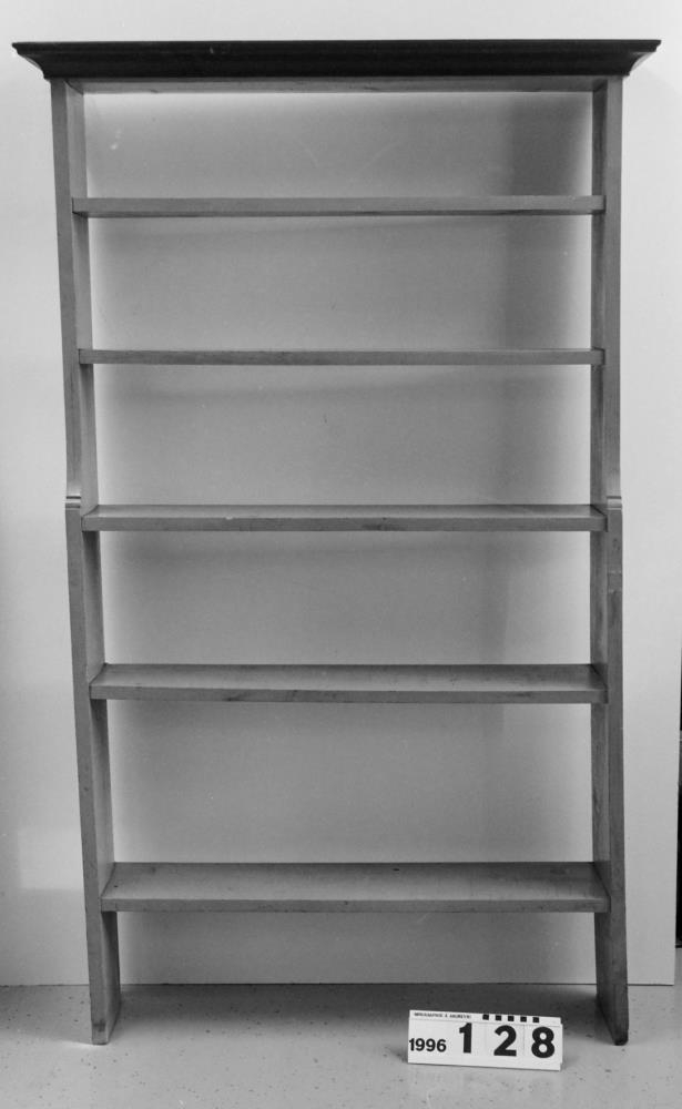 á við og eru tvær efri hillurnar mjórri en hinar þrjár neðri. Júní 2000,