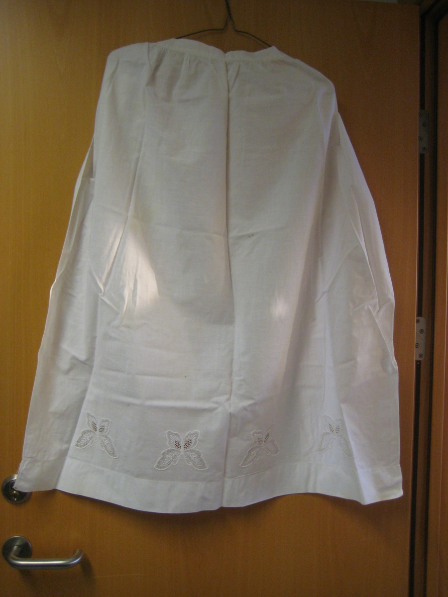 Sídd hennar er 86,0 sm. Útsaumuð svunta notuð í Mjólkurbúð í Reykjavík 1924-1925. Sjá mynd í Skjalasafni.