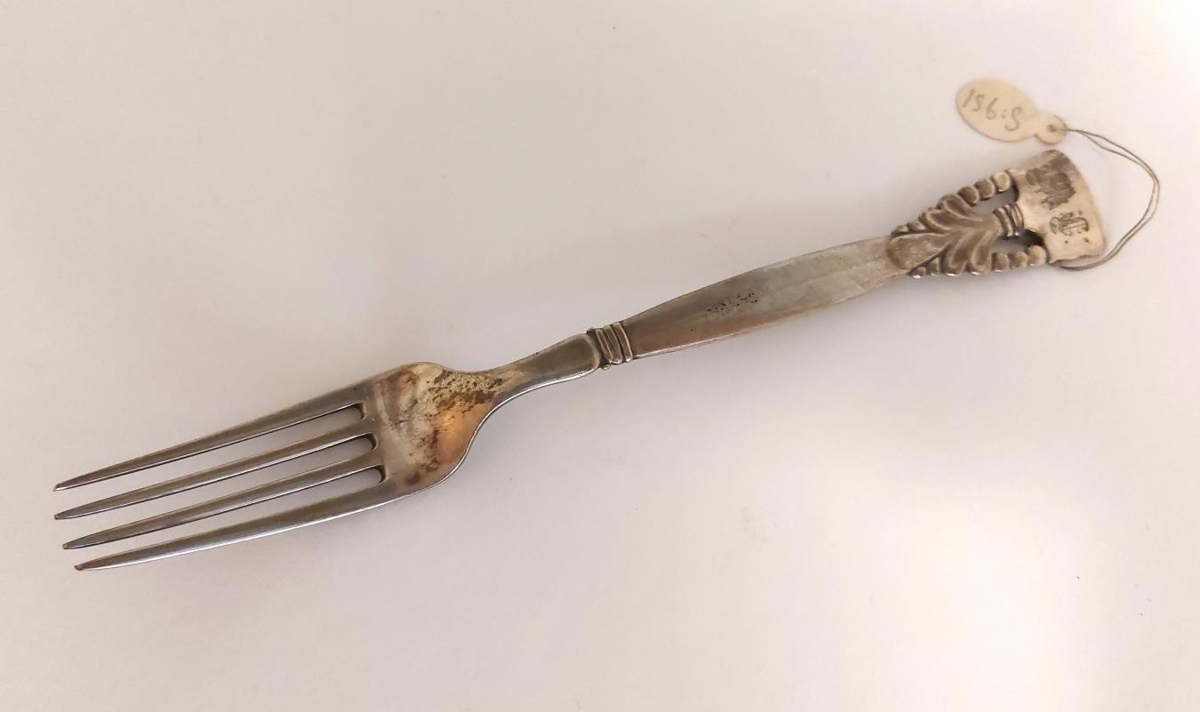 Silfurgaffall, merktur M.L. Frá nemendum 1925. Gefið af frú Sigríði Jónsdóttur frá Giljum, að Sjafnargötu 1 í Reykjavík.