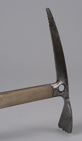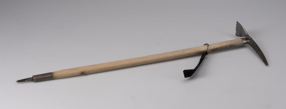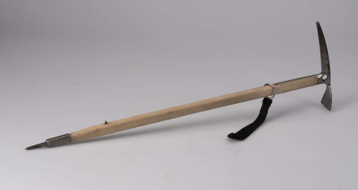 Ísöxi, 90 cm löng með 28 cm haus. Broddur er neðst á axarskaftinu. Mjórri endi haussins, hakinn, er tenntur yst að neðan, en egg blaðsins er ölduskorin. Á hlið hakans er nafn framleiðandans, Stubai, grafið í einfalda mynd af fjalli. Þar fyrir neðan er grafið "Nanga Parbat" og "MADE IN AUSTRIA". Gat er á hausnum, svo þar má þræða taug í gegn eða krækja í karabínu. Bæði axarhausinn og broddurinn eru úr vel hertu stáli, en skaftið er askur. Eftir skaftinu rennur hringur, og við hann fest svört úlnliðsól. Neðarlega á skaftinu er stoppnagli svo hringurinn renni ekki af því. Öxin er í góðu ásigkomulagi, en hausinn er eilítið tekinn að ryðga.