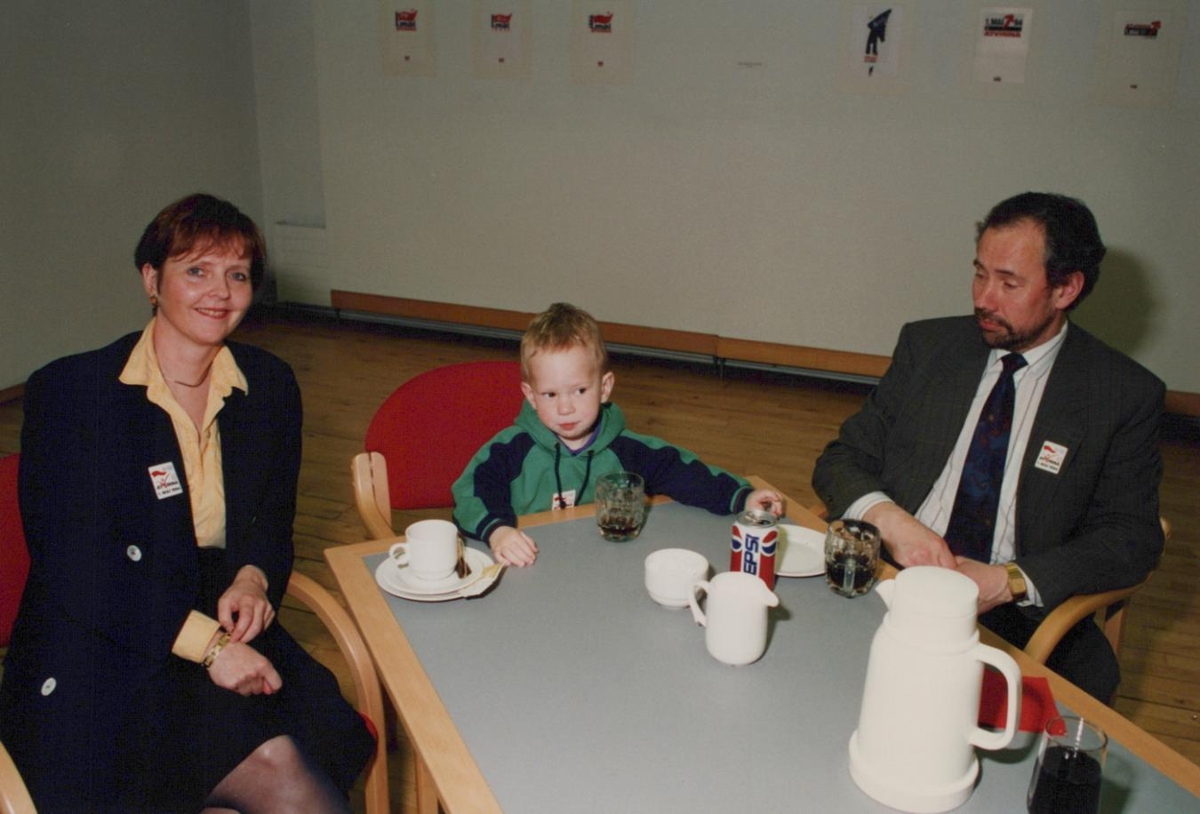 Ingibjörg R Guðmundsdóttir fyrsti forseti ASÍ afhendir Ásgeiri Jónssyni höfundi 1. maí merkis ársins 1994 viðurkenningu.