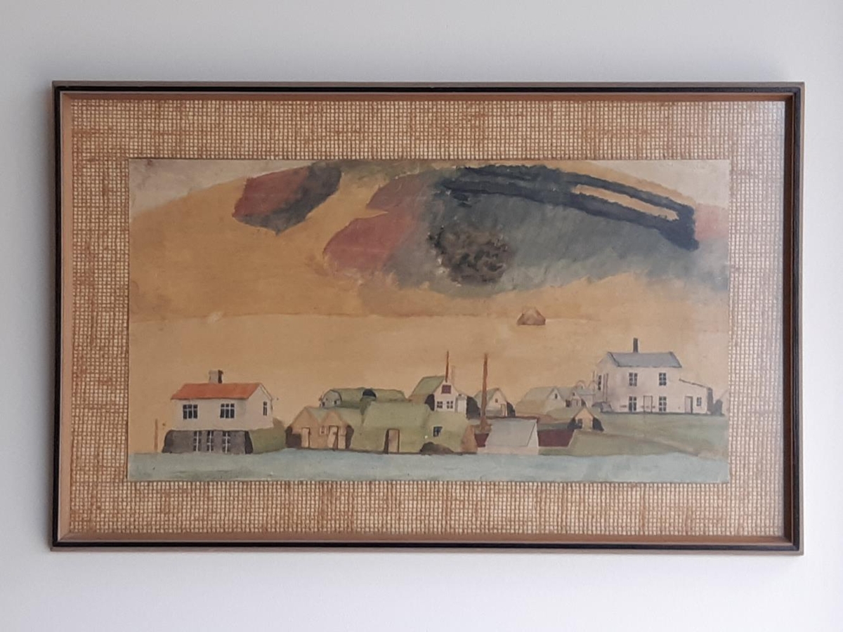 Vatnslitamynd af Kerlingardal er Skarphéðinn Haraldsson bróðir gefanda málaði um 1930 (f. 1916). Myndin sýnir bæjarhúsin, bæði torfhúsnæði og nýlegri steinsteypubyggingar. Fjall er í bakgrunni. Er í ljósum viðarramma með striga í bakgrunni sem mynd er límd á. Frá Guðrúnu Haraldsdóttur frá Kerlingardal.